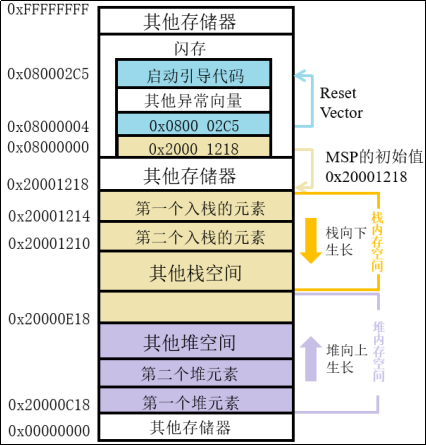 图8.2.3.3 初始化堆栈、MSP和PC后的内存情况