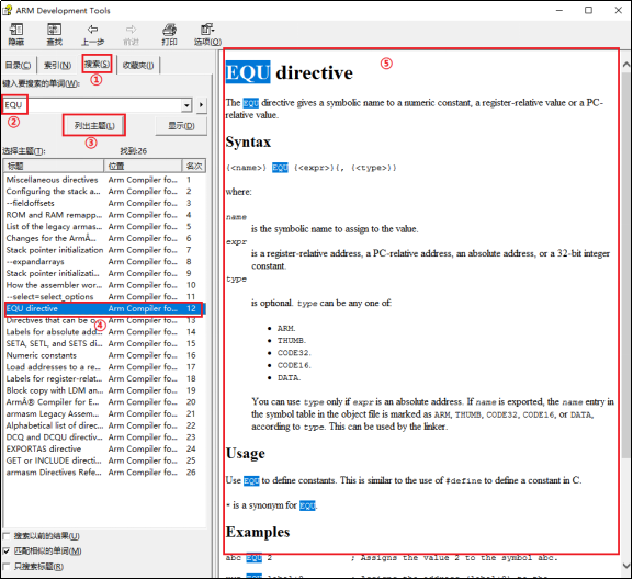 搜索到的标题有很多,我们只需要看EQU directive这部分即可。