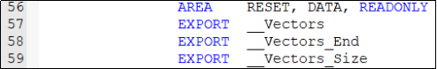 __Vectors 为向量表起始地址, __Vectors_End 为向量表结束地址,__Vectors_Size为向量表大小,__Vectors_Size = __Vectors_End - __Vectors。