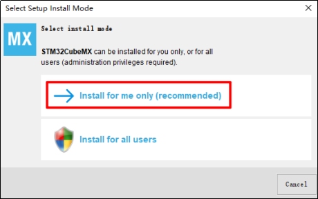 STM32CubeMX6.2.0版本开始内嵌了Java运行环境,所以6.2.0版本之后不再需要额外安装Java,本书以介绍STM32CubeMX6.11.1版本安装过程为例,故直接安装STM32CubeMX即可。