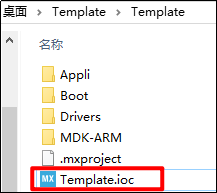 Template.ioc是STM32CubeMX工程文件,双击该文件就会在STM32CubeMX中打开。