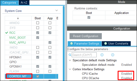 这里我们主要配置Cortex-M7内核相关的参数。我们依次点击Cortex_M7 进入配置界面,操作过程如下图9.3.3.14所示: