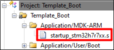 2、添加启动文件到我们的工程中,我们新建一个Application/MDK-ARM分组,把startup_stm32h7r7xx.s添加到这个分组,如图9.4.2所示: