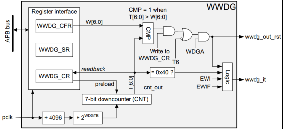 下面先来学习WWDG框图,通过学习WWDG框图会有一个很好的整体掌握,同时对之后的编程也会有一个清晰的思路。