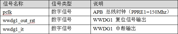 从WWDG框图整体认知就是,WWDG有一个输入(时钟pclk),经过一个除4096的分频器,再经过一个分频系数可选(1、2、4、8…128)的可编程预分频器提供时钟给一个7位递减计数器,这里有两个输出信号。具体如下表: