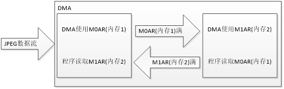 图58.1.2.1 DMA双缓冲读取JPEG数据原理框图