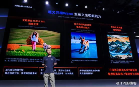 不仅如此,此次大会上,通义万相Wanx还发布了文生视频能力,具备强大的画面视觉动态生成能力,擅长概念理解与组合生成,给用户提供多种艺术风格,带来影视级质感的画面,并且支持多语言和适配多种规格比例的视频。据了解,此次云栖大会飞天音乐节现场视频就是借助通义万相生成。