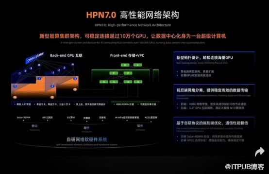 在网络方面,大模型对AI基础设施提出了更高要求,HPN7.0架构为AI时代超大规模、超高稳定性的网络需求而研发,可稳定连接超过10万个GPU,让数据中心化身为一台超级计算机。