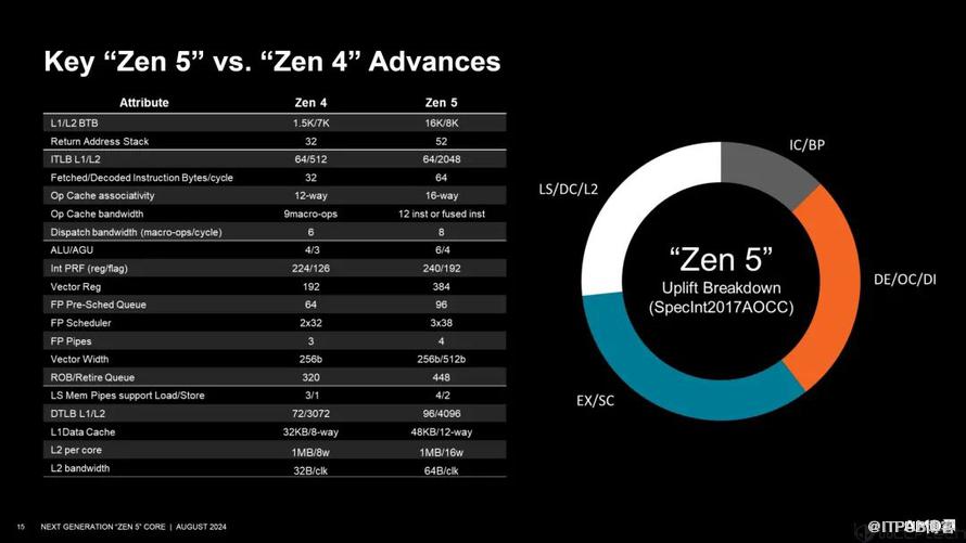 下面我们来看下Zen 5与Zen 4技术规格细节对比,也是对上边所讲的一个概括。