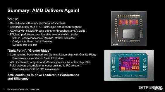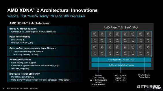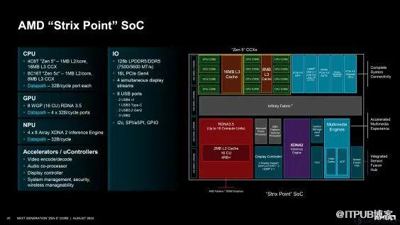 在近日的Hot Chips大会上,AMD深入展示了其全新的Zen 5核心架构,包括各个微架构模块的具体变化,涉及桌面端、移动端、服务器端异同,包括Zen5、Zen5c的新理念以及升级的RDNA 3.5 GPU、XDNA 2 NPU等信息。