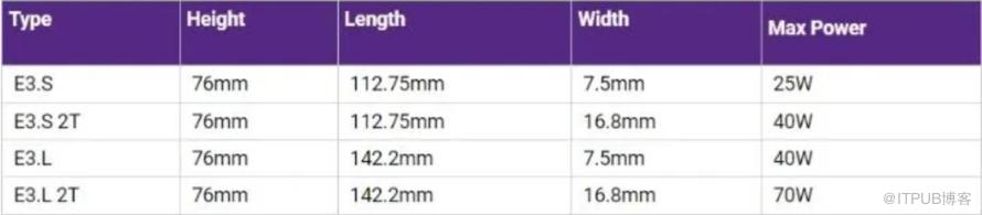 可以看到,EDSFF SSD在常见的20W、25W功率版本的基础上,增加了40W和70W版本,同时,其PCIe Lane数量也在x4的基础上,增加了x8和x16,这些都为企业级SSD实现更高的读写性能打下基础。