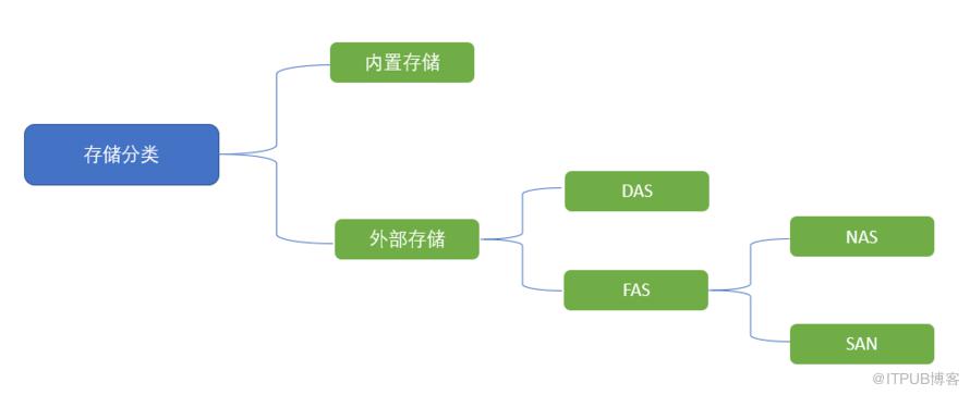 外挂存储根据连接的不同方式又可以分为:直连式存储(Direct-Attached Storage,简称DAS)和网络化存储(Fabric-Attached Storage,简称FAS);