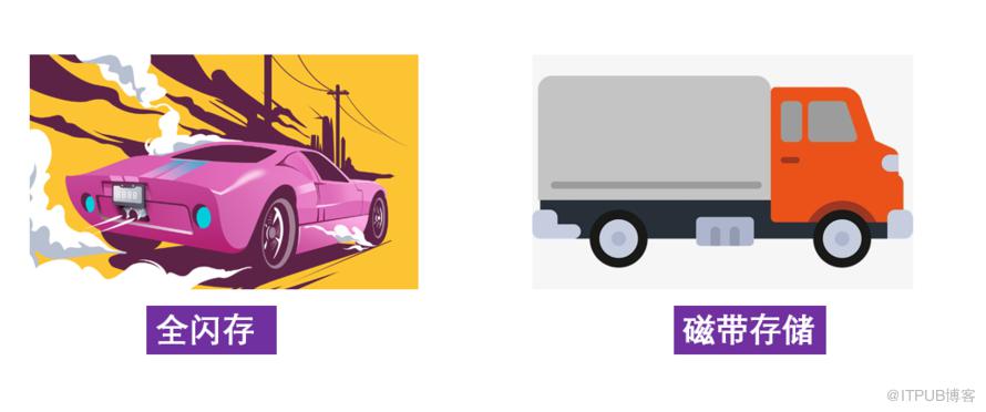 通过上文,我们了解到磁盘存储的特点, 我们可以跟全闪存做个对比,如果将全闪存比喻为存储届的超级跑车,那么磁盘存储可以比喻成用来拉货的大卡车。