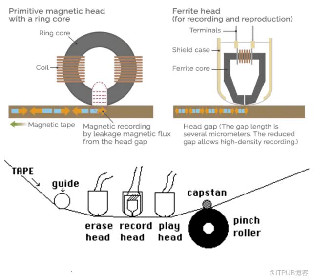 通常情况下,磁带存储是由磁带介质、磁头、磁带传送机构和控制电路等组成,如下图。