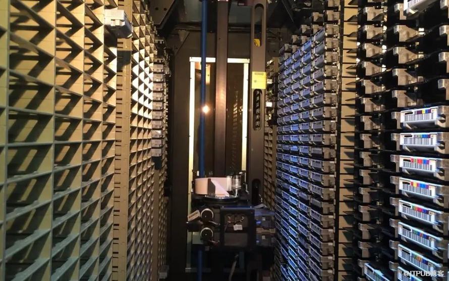 目前,企业磁带存储常见有两种使用方式,一种是独立机柜,单个磁带库占地面积较小,通常配置的槽位数为400~900左右的量级(一个槽位可以插一盘磁带),对应物理存储空间约5~10PB 左右;