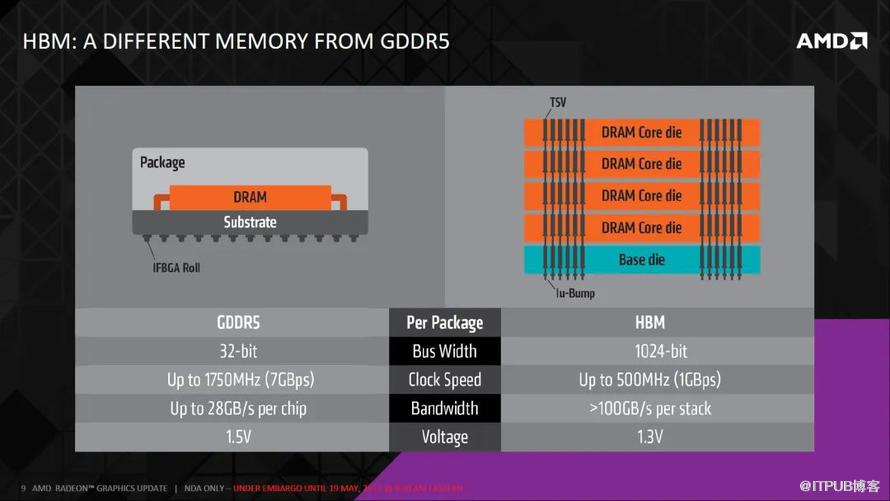 打个比喻,就是传统的DDR就是采用的"平房设计"方式,HBM则是"楼房设计"方式,从而可实现了更高的性能和带宽。