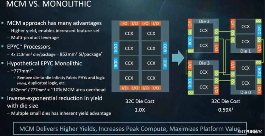 在当时,Intel采用的单片处理器设计方法。从本质上讲,这意味着需要将内核、缓存和I/O资源等都要放在同一个单片芯片上。