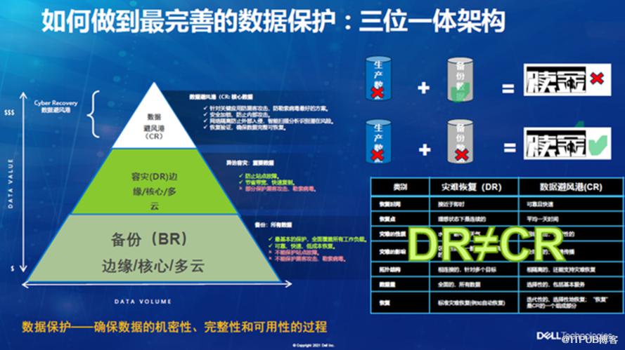 例如,戴尔科技就有一套非常完善的集备份+容灾+数据避风港的"三位一体"的数据保护解决方案。避风港的要求是:第一数据不能篡改,第二与生产隔离,最后是有一个恢复平台,当用户遭受到网络攻击后,它可以把数据恢复回来,最终为企业客户构建起数据保护的闭环战略。