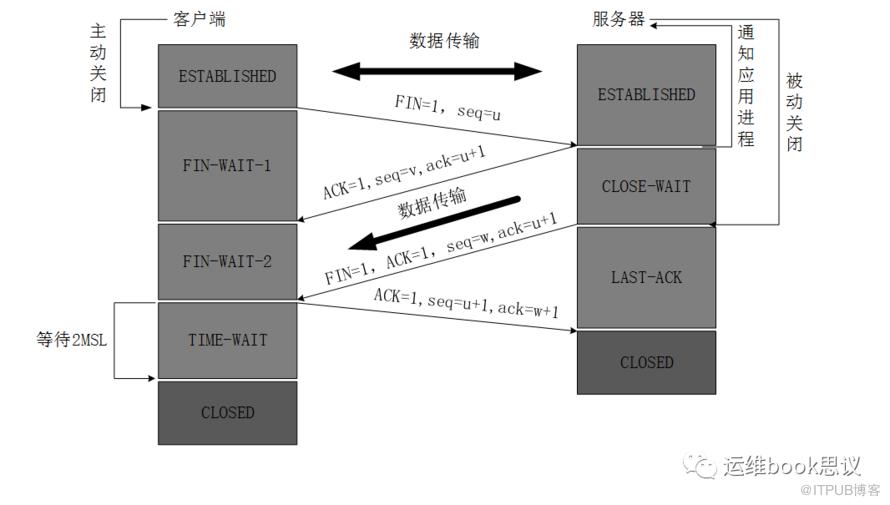 客户端需要经过最长报文段寿命(MSL)的时间,这个时间通常为两分钟,将传输控制块撤销后,才进入关闭(CLOSED)状态。而服务端结束TCP连接要更早一些,它一收到确认报文,就立即撤销传输控制块并进入关闭状态。