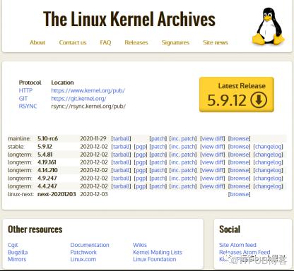 在编译安装内核源码之前,要去获取Linux内核的压缩文件,获取的路径有很多,最直接的就是去内核官网获取(http://www.kernel.org),也可以到各镜像站上去下载。