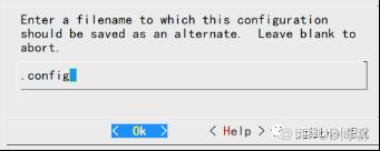 在内核配置菜单中选择Save进行保存,需要注意的是,该菜单中需要使用键盘中的方向键与回车键进行保存。配置保存之后会弹出配置界面