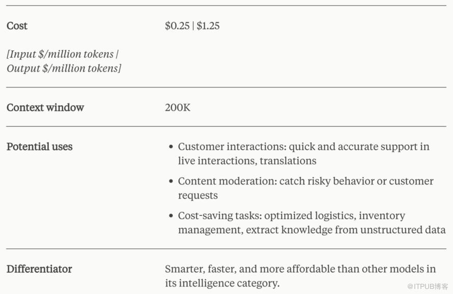 Haiku是市场上同类智能模型重速度最快、性价比最高的。它可以在不到三秒的时间内阅读一篇包含图表和图形的arXiv(约10k tokens)研究论文。我们预计在推出后性能将进一步提高。