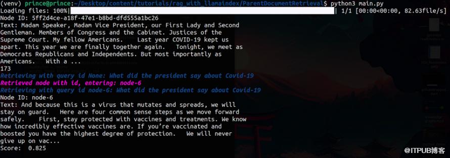 from llama_index import (Document,StorageContext,VectorStoreIndex,SimpleDirectoryReader,ServiceContext,load_index_from_storage,)from llama_index.retrievers import RecursiveRetrieverfrom llama_index.query_engine import RetrieverQueryEnginefrom llama_index.node_parser import SimpleNodeParserfrom llama_index.embeddings import OpenAIEmbeddingfrom llama_index.schema import IndexNodefrom llama_index.llms import OpenAI# for loading environment variablesfrom decouple import configimport os# set env variablesos.environ["OPENAI_API_KEY"] = config("OPENAI_API_KEY")# create LLM and Embedding Modelembed_model = OpenAIEmbedding()llm = OpenAI(model="gpt-3.5-turbo")service_context = ServiceContext.from_defaults(embed_model=embed_model, llm=llm)# load datadocuments = SimpleDirectoryReader(input_dir="../dataFiles").load_data(show_progress=True)doc_text = "\n\n".join([d.get_content() for d in documents])docs = [Document(text=doc_text)]# create nodes parsernode_parser = SimpleNodeParser.from_defaults(chunk_size=1024)# split into nodesbase_nodes = node_parser.get_nodes_from_documents(documents=docs)# set document IDsfor idx, node in enumerate(base_nodes):node.id_ = f"node-{idx}"# create parent child documentssub_chunk_sizes = [128, 256, 512]sub_node_parsers = [SimpleNodeParser.from_defaults(chunk_size=c, chunk_overlap=0) for c in sub_chunk_sizes]all_nodes = []for base_node in base_nodes:for n in sub_node_parsers:sub_nodes = n.get_nodes_from_documents([base_node])sub_inodes = [IndexNode.from_text_node(sn, base_node.node_id) for sn in sub_nodes]all_nodes.extend(sub_inodes)# also add original node to nodeoriginal_node = IndexNode.from_text_node(base_node, base_node.node_id)all_nodes.append(original_node)all_nodes_dict = {n.node_id: n for n in all_nodes}# creating indexindex = VectorStoreIndex(nodes=all_nodes, service_context=service_context)# creating a chunk retrievervector_retriever_chunk = index.as_retriever(similarity_top_k=2)retriever_chunk = RecursiveRetriever("vector",retriever_dict={"vector": vector_retriever_chunk},node_dict=all_nodes_dict,verbose=True,)query_engine_chunk = RetrieverQueryEngine.from_args(retriever_chunk, service_context=service_context)response = query_engine_chunk.query("What did the president say about Covid-19")print(str(response))