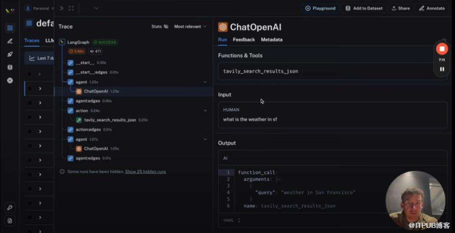使用LangSmith,我们可以看到我们的代理所采取的详细步骤,包括对OpenAI的调用和由此产生的输出。