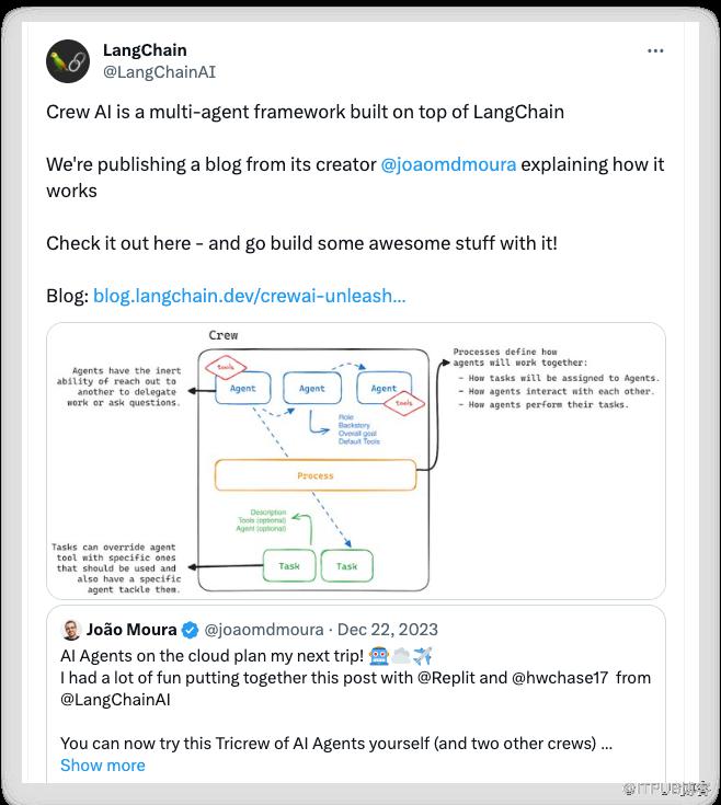 基于LLM构建的Agent中有一个明显的现象就是多智能体体系结构的表现要超越单智能体,即使单智能体使用无可挑剔的提示策略。本文将探索另一个有趣的多智能体框架——CrewAI。