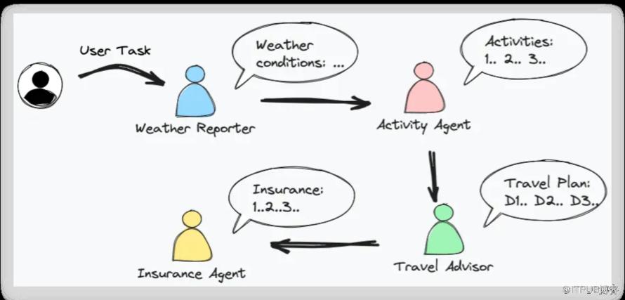 为了证明Agent顺序任务的易用性,我将使用之前AutoGen演示相同的任务,可以参考之前的博文LLM之Agent(九)| 通过API集成赋能Autogen Multi-Agent系统,该演示要求人工智能代理根据天气条件和所附的保险项目列表,生成一个包含适当活动的旅行计划。