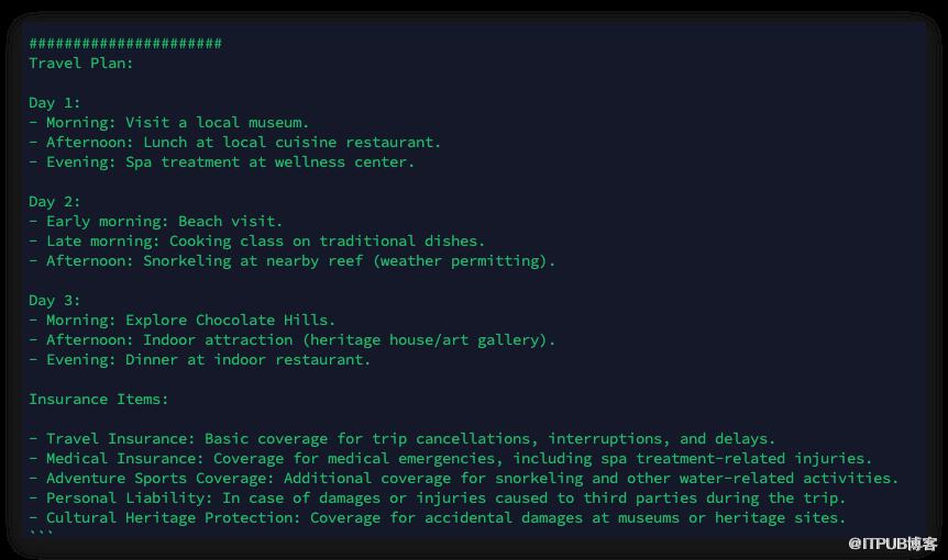 Travel advisor:生成包括每天活动在内的旅行行程。