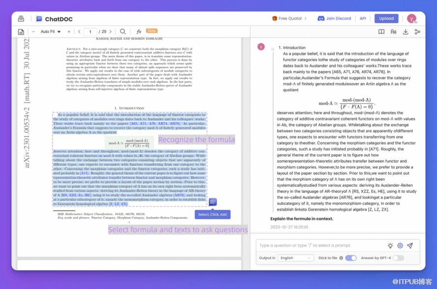 如上所述,ChatDOC允许用户选择文本/表格/公式进行询问。在这里,我们应该特别提到公式识别。