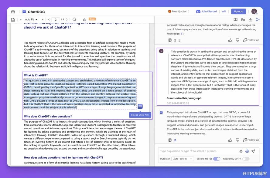 ChatDOC[2]可以基于文档内容进行聊天,并可以给出答案的引用来源。