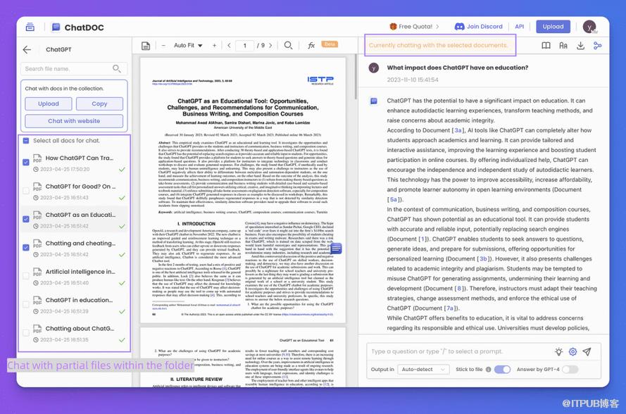 此外,您可以选择与文件夹中的部分文件聊天。选择文件并查询它们,然后您将从所选文件中获得答案。