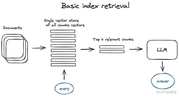 在基本的RAG场景中,大致有如下步骤:首先将文本划分为多个块,使用Transformer Encoder模型将这些块嵌入到向量中,将这些向量存储到向量数据库并建立索引,查询会检索向量数据库中相关的上下文,这些上下文和查询一起生成最终的LLM提示,并引导LLM合成响应。