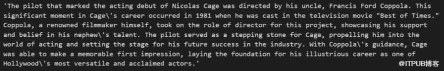 query_bundle = hyde("Who directed the pilot that marked the acting debut of Nicolas Cage?")hyde_doc = query_bundle.embedding_strs[0]hyde_doc