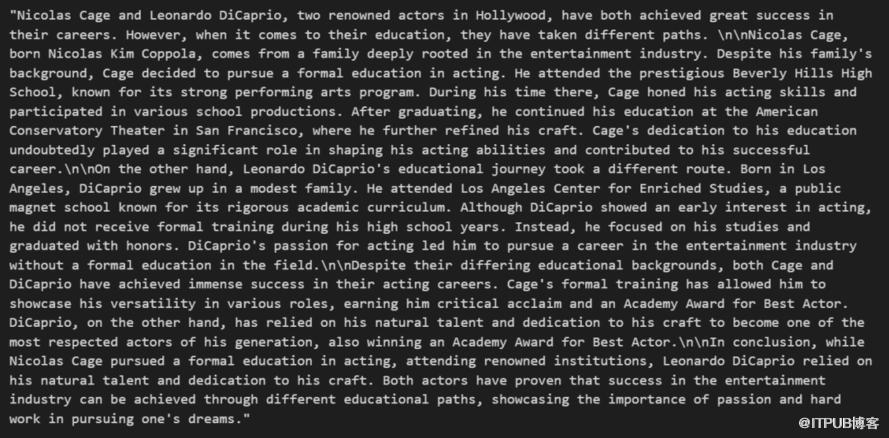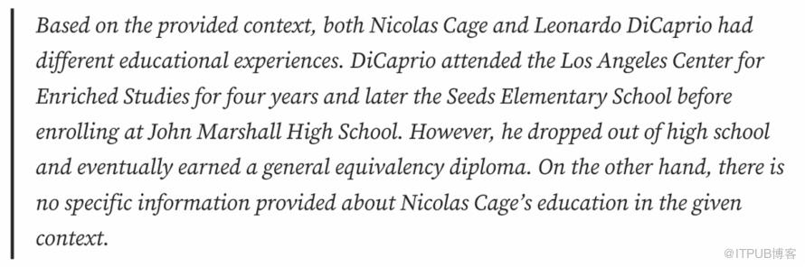 response = hyde_query_engine.query("Compare the education received by Nicolas Cage and Leonardo DiCaprio.")print(response)