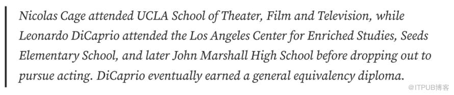 问题2——“Compare the education received by Nicolas Cage and Leonardo DiCaprio.”