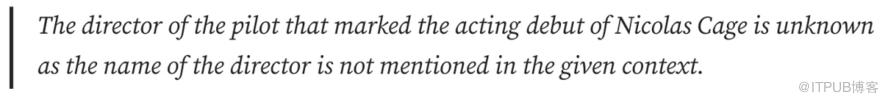 该查询的问题需要参考多条信息:尼古拉斯·凯奇的表演处女作和这部电影的导演。提示中只提到了尼古拉斯·凯奇,而导演的名字却没有被涉及。由于该模型不知道凯奇首次亮相的电视试播节目《最好的时代》的名字,因此无法从我们索引的文件中检索到相关细节。