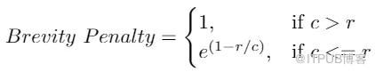 其中r是参考翻译的长度,c是机器翻译的长度。