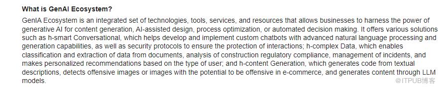 为了准确回答我们之前的问题(What is Hiberus GenIA Ecosystem?),我们必须将LLM与GenIA生态系统的信息联系起来。很幸运!有两个网页是理解GenIA生态系统的关键。