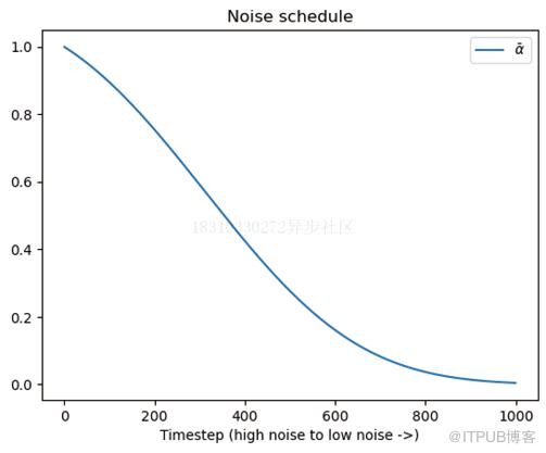 我们可以观察一下在添加噪声过程中,噪声水平随时间步增加的变化