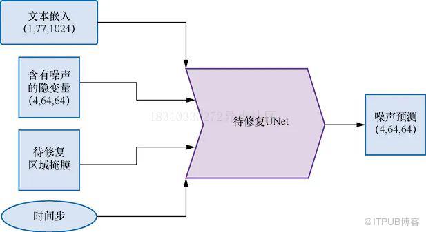 Inpainting是一个图片修复技术,它可以保留图片一部分内容不变,其他部分生成新的内容,Inpainting UNet网络结构如下图所示: