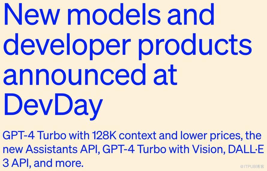 2023年11月7日,OpenAI开发者大会带来一些列功能更新以及更低的API价格: