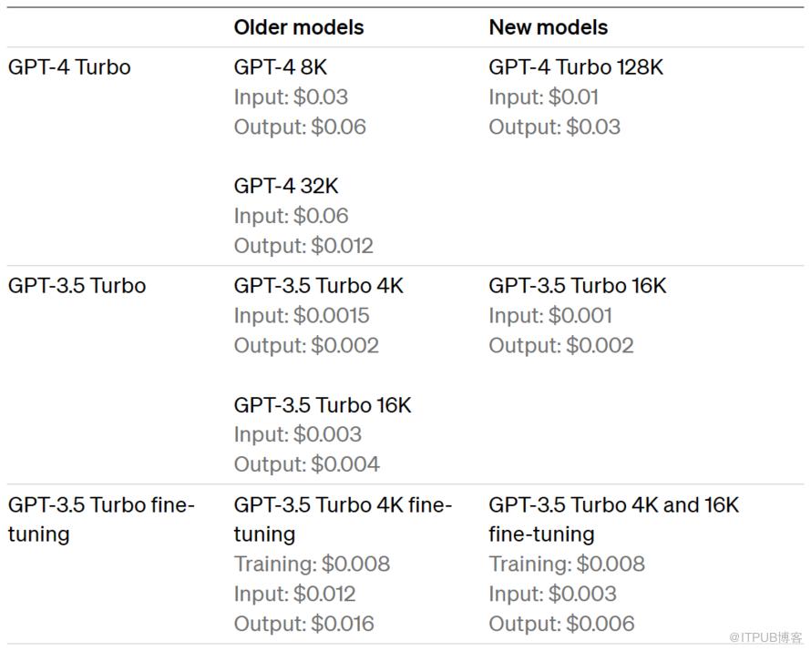 OpenAI在整个平台上降低了几个价格,以将节省的费用转嫁给开发商(以下所有价格均以每1000个代币表示):