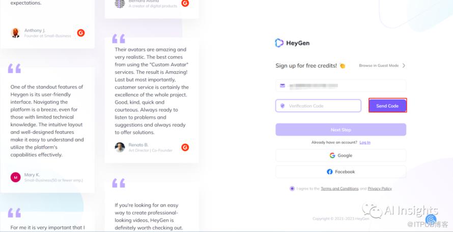 首先进入 HeyGen 官网,点击“免费试用 HeyGen”,用邮箱注册新账号并登录。