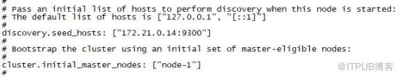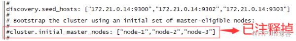 在老配置基础上修改,注释掉:initial_master_nodes 的配置。配置如下: