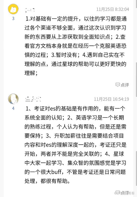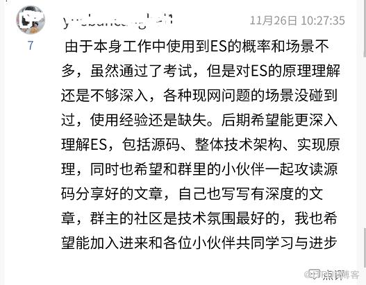 我发布过 Elastic 认证的文章比较多了,老读者可能会“腻“,下面是死磕 Elasticsearch 知识星球内其他已通过的 Elastic 认证工程师现身说法: