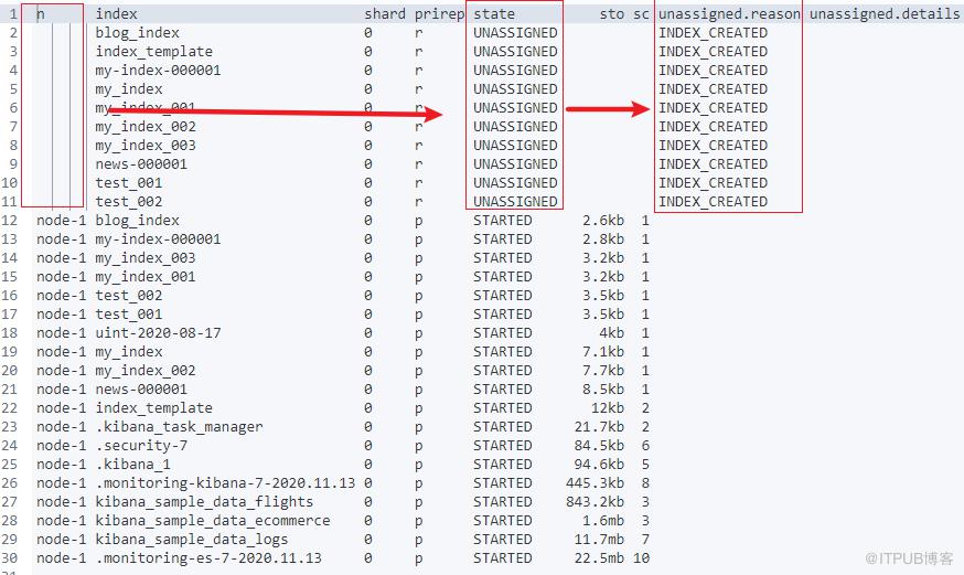 只提示一个字段的含义:unassigned.reason 未分配分片的原因,返回值包括: