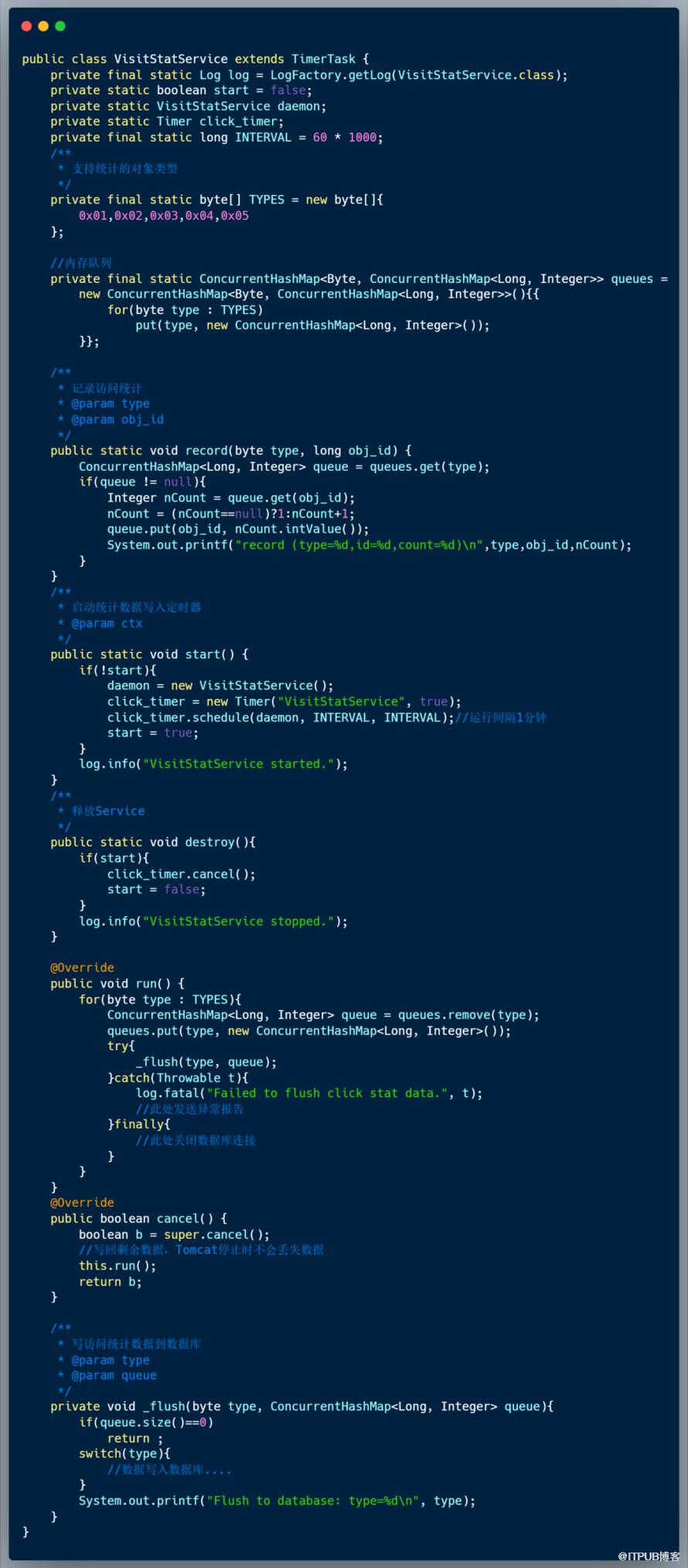 用户访问过一次文章、新闻、代码详情页面,访问次数字段加 1 , 在 oschina 上这个操作是异步的,访问的时候只是将数据在内存中保存,每隔固定时间将这些数据写入数据库。